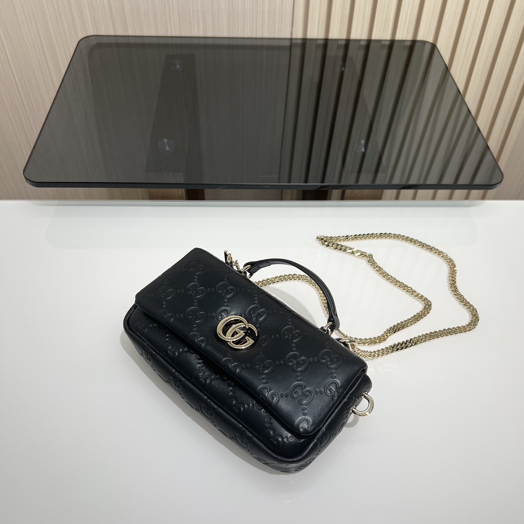 구찌 GG 밀라노 미니 탑 핸들백 블랙