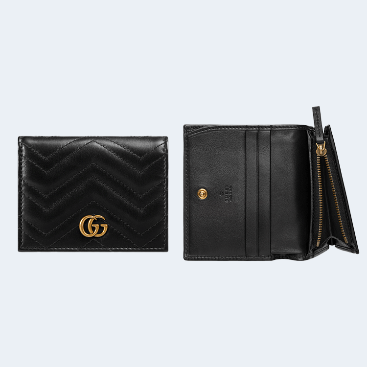 구찌 GG 마몽 마틀라세 지퍼 카드 케이스 지갑 블랙