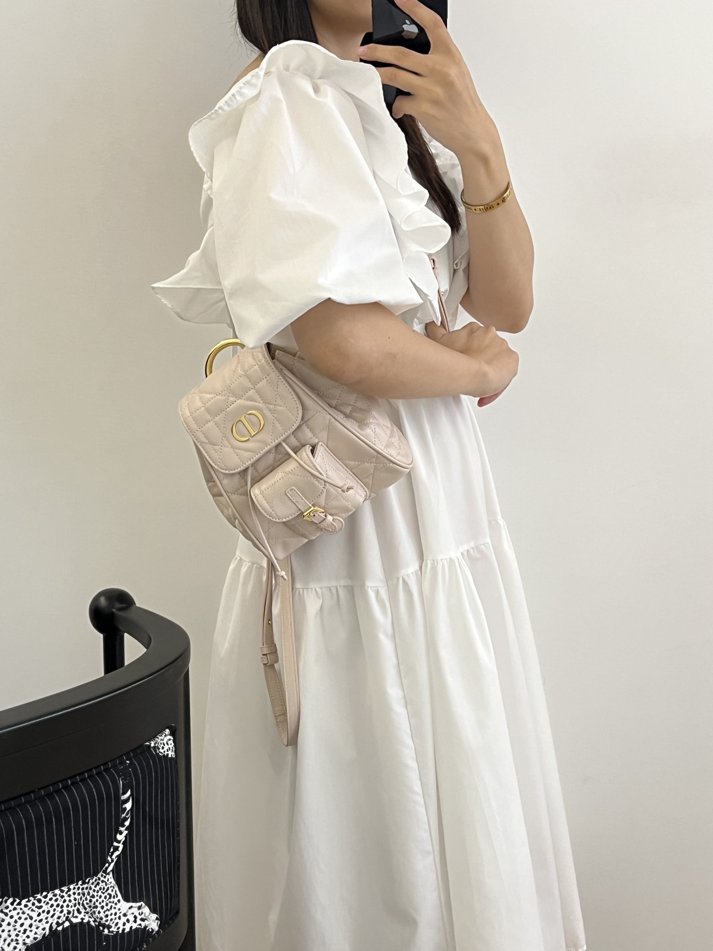 디올 레이디 나비 스터드 스몰 백 화이트