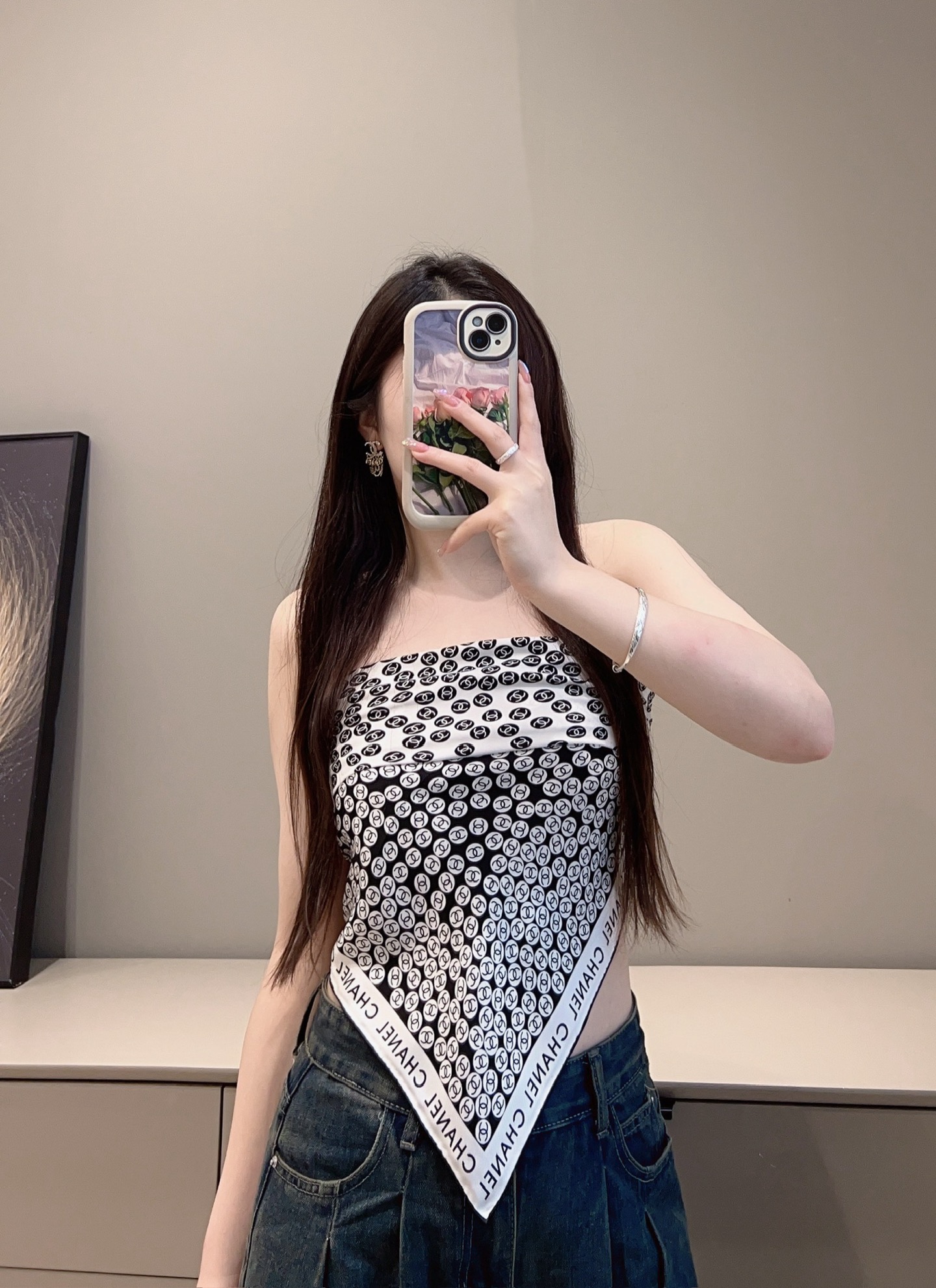 샤넬 버블 블랙&화이트 스카프