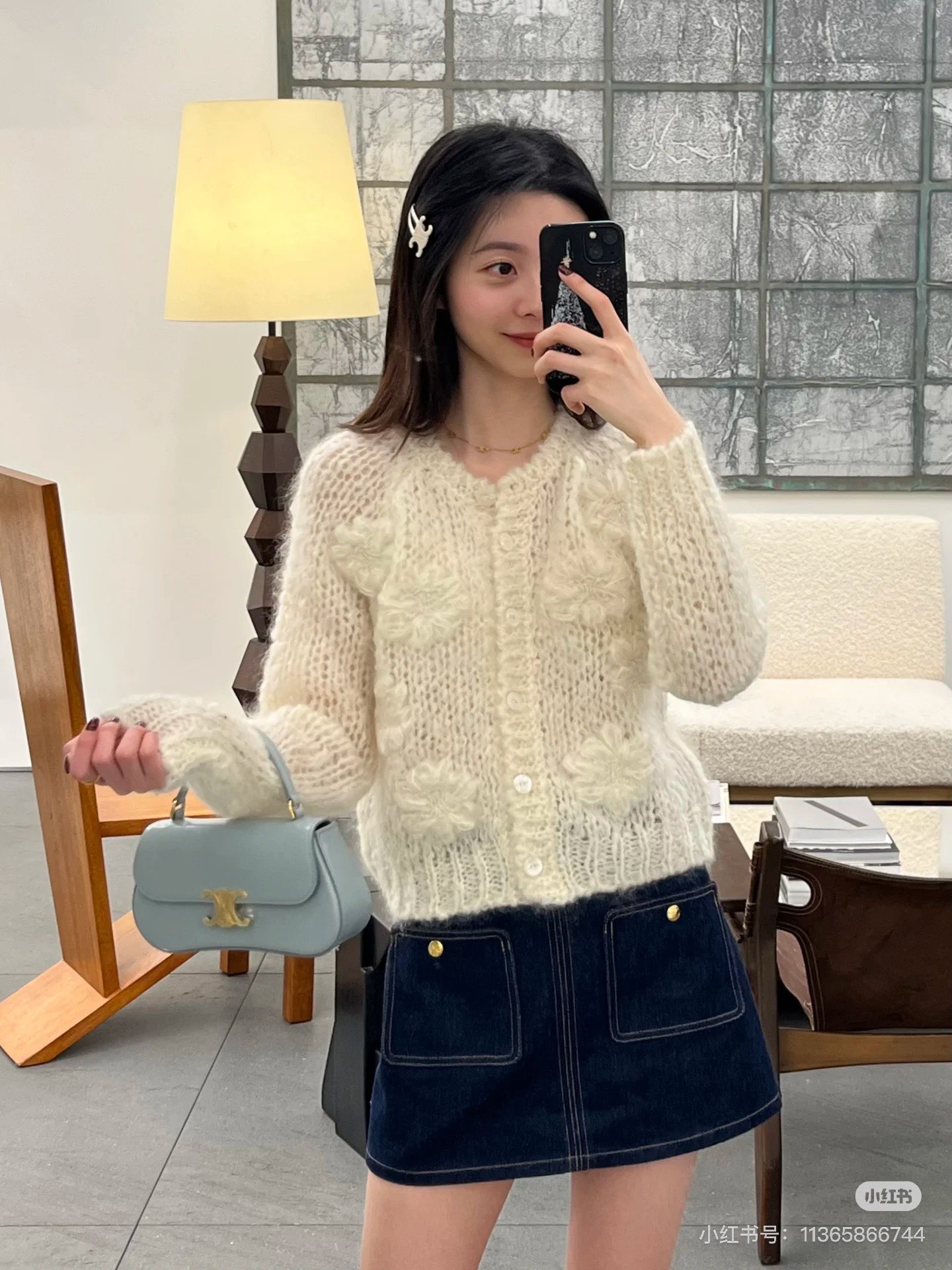 셀린느 페어 아일 가디건 모헤어 실크 블루 오프 화이트