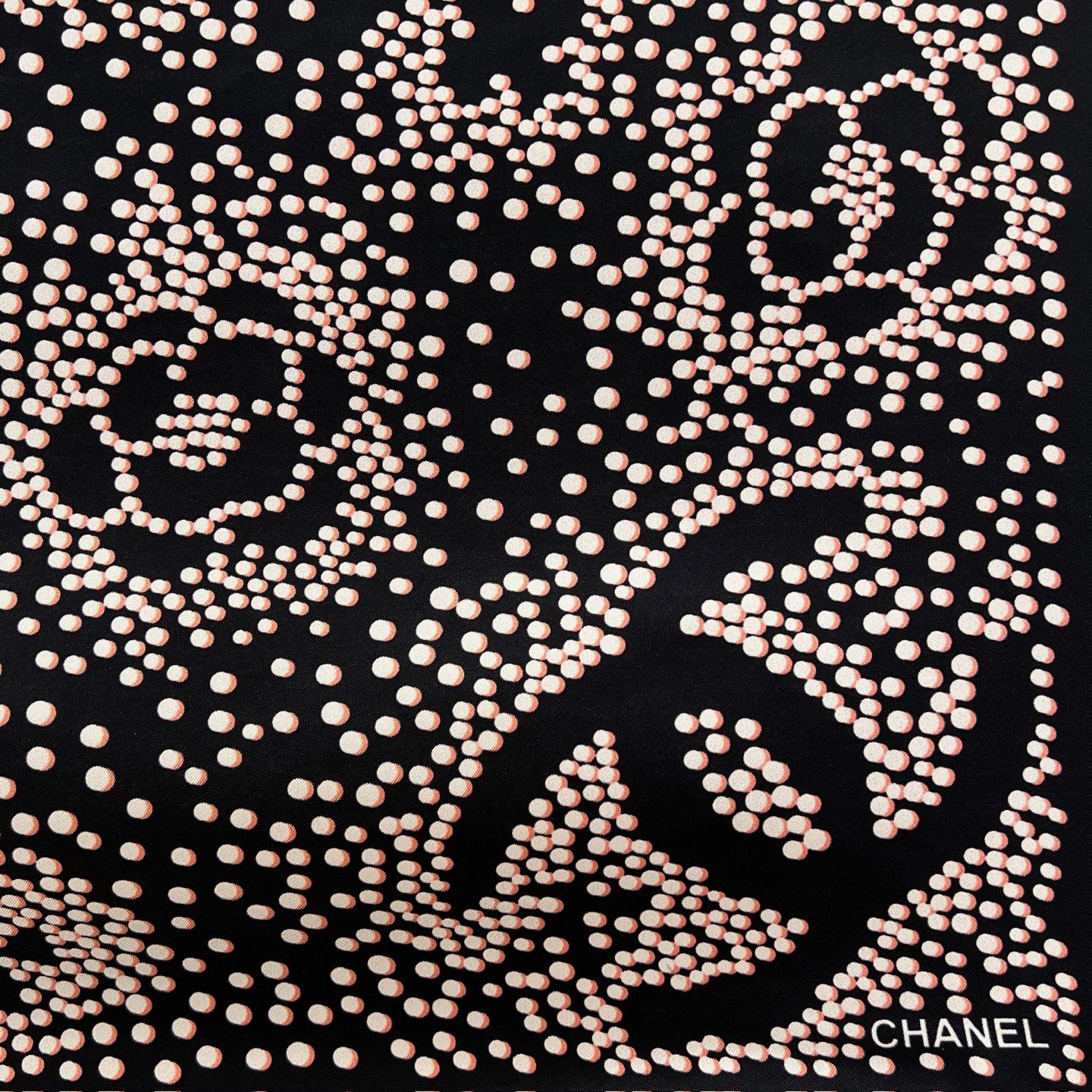 샤넬 폴카닷 클로버 블랙핑크 스카프