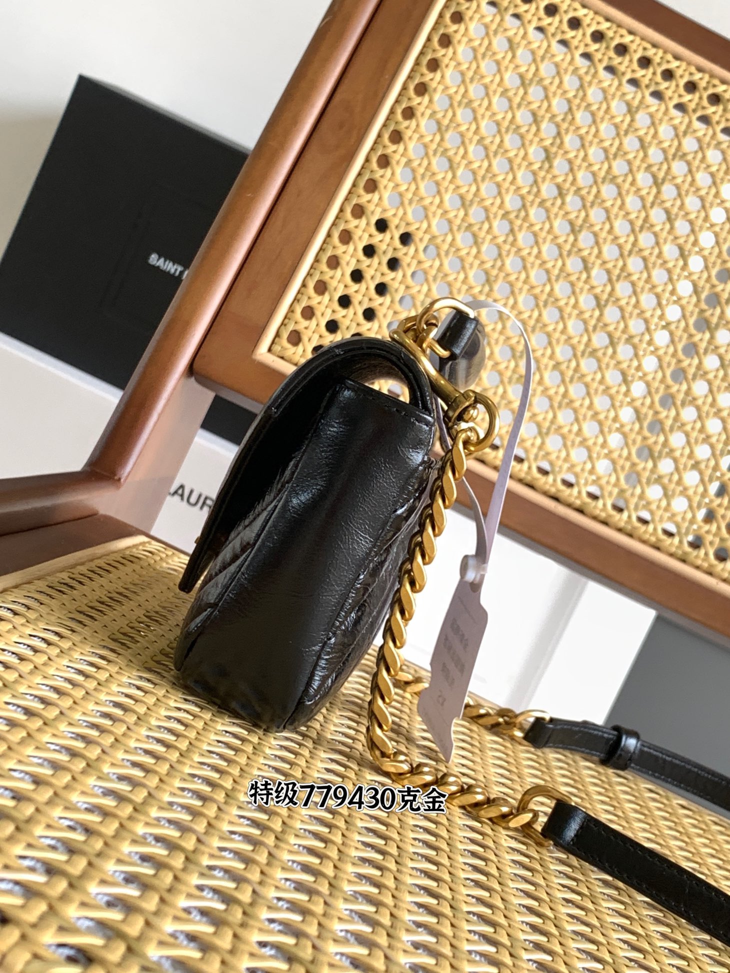 생로랑 샤이니 클래클드 레더 미니 체인 백 블랙