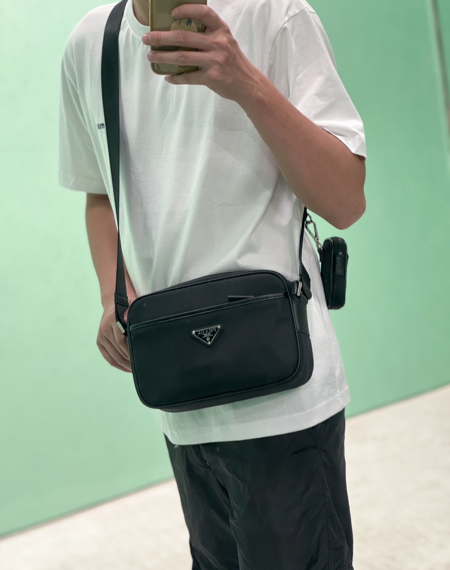 프라다 리나일론 가죽 슬링백