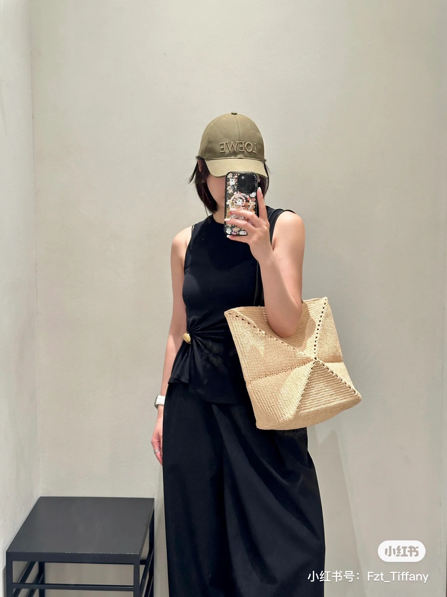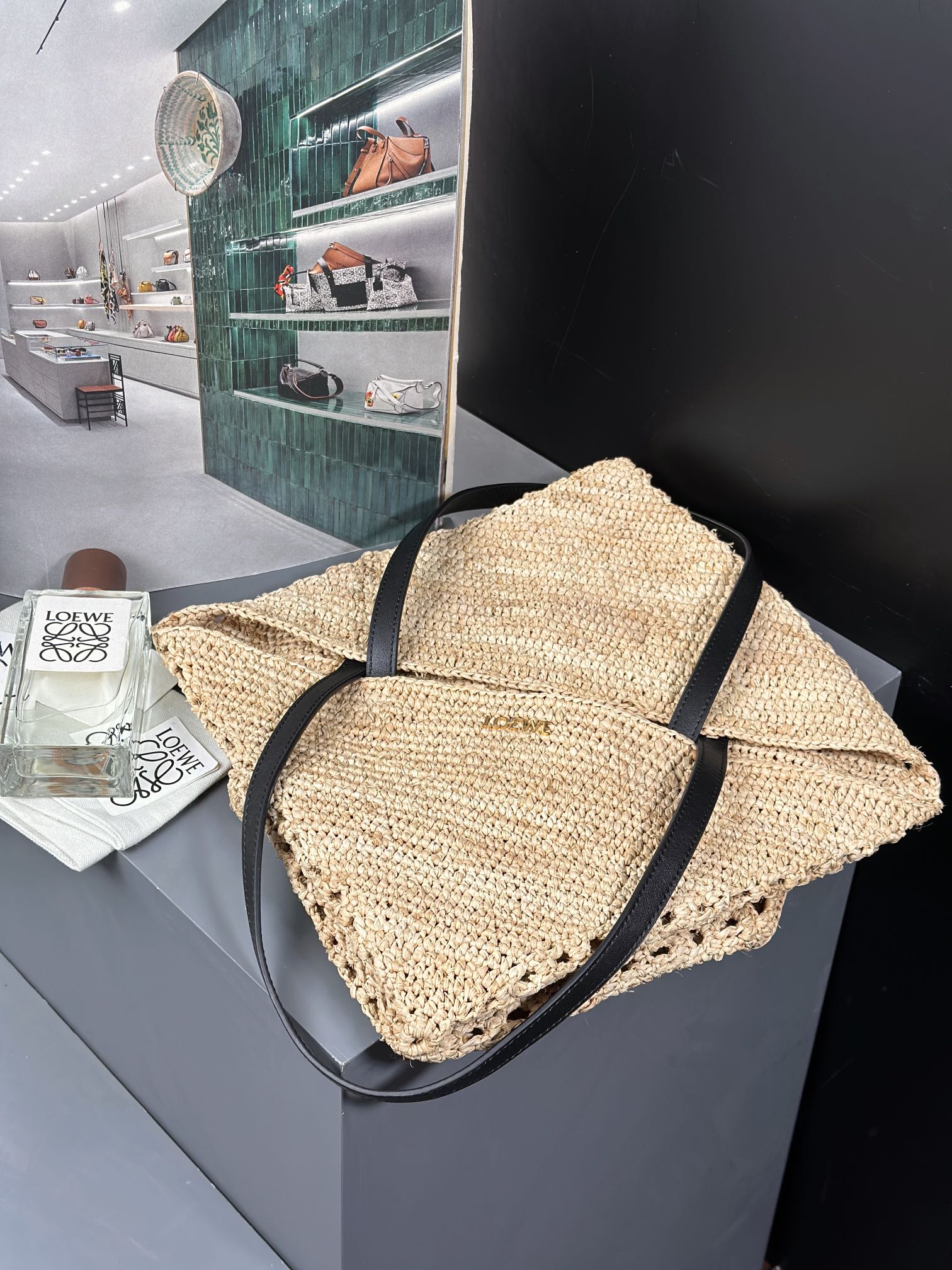 로에베 라피아 & 카프스킨 스몰 내추럴 스퀘어 바스켓 백