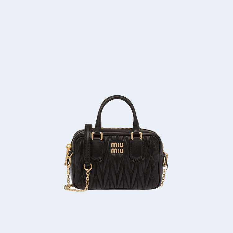 미우미우 마테라쎄 나파 가죽 탑 핸들 미니백 블랙