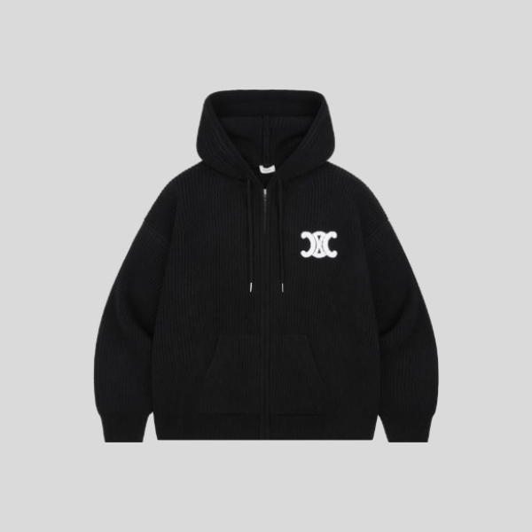 셀린느 아플리케 울 후드 집업