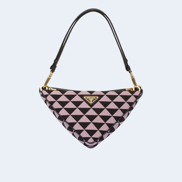 프라다 스몰 심볼 자수 패브릭 핸드백 초크 화이트