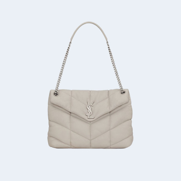 생로랑 PUFFER 스몰 레더 숄더백 화이트 골드