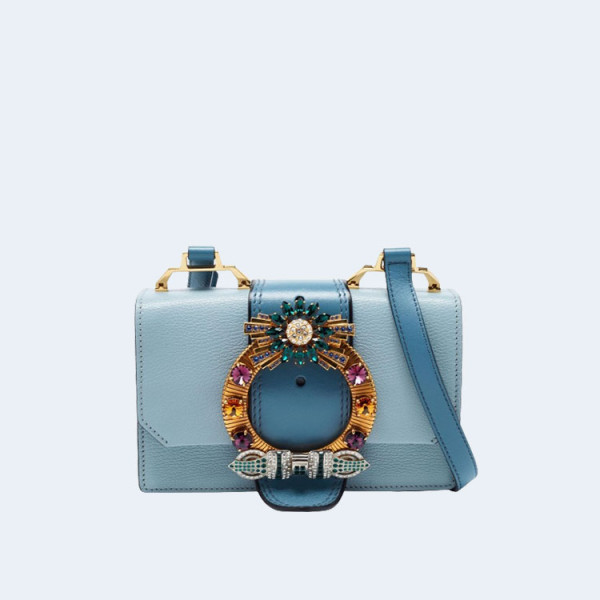 미우미우 크리스탈 버클 플랩 숄더백 블루
