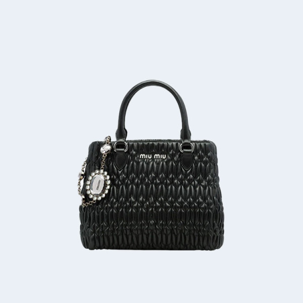 미우미우 마테라쎄 나파 가죽 탑 핸들 미니백 블랙