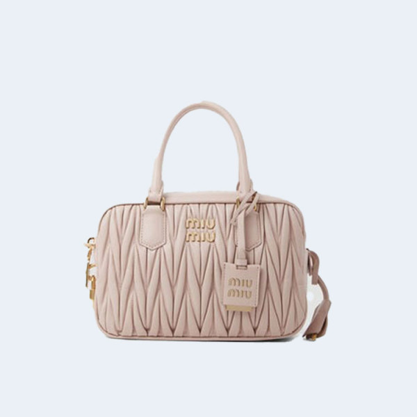 미우미우 마테라쎄 나파 가죽 탑 핸들 미니백 핑크