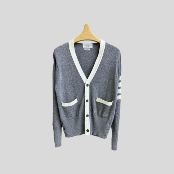 톰브라운 브이넥 니트 가디건 (화이트,그레이)