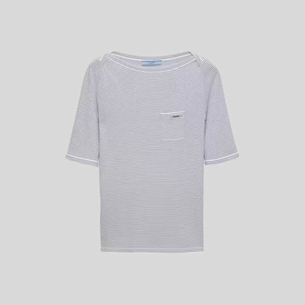 프라다 스트라이프 크루넥 코튼 스웨터